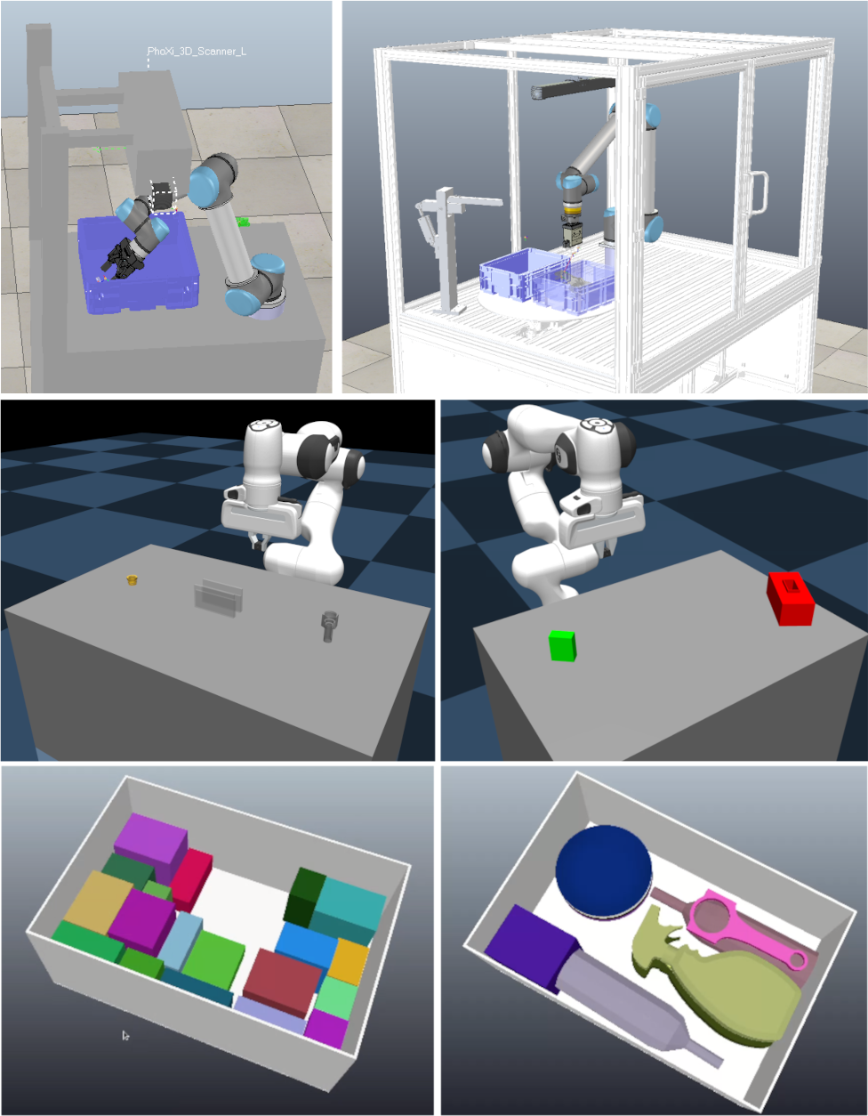 1. Bin picking: This track involves tasks on machine tending and kitting (compiling all parts required for a specific assembly step), which are modeled after use cases from our project partners Käpple Qualitätsleister GmbH and Daimler Truck AG as well as the external sponsor Magna.